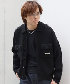 ダブルポケットニットジャケット / ジャケット ニット ビスネーム シンプル ポケット ブラック