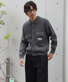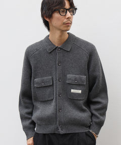- ダブルポケットニットジャケット / ジャケット ニット ビスネーム シンプル ポケット グレー