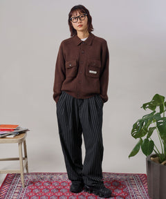 - ダブルポケットニットジャケット / ジャケット ニット ビスネーム シンプル ポケット ブラウン