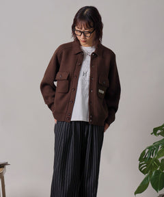 ダブルポケットニットジャケット / ジャケット ニット ビスネーム シンプル ポケット ブラウン