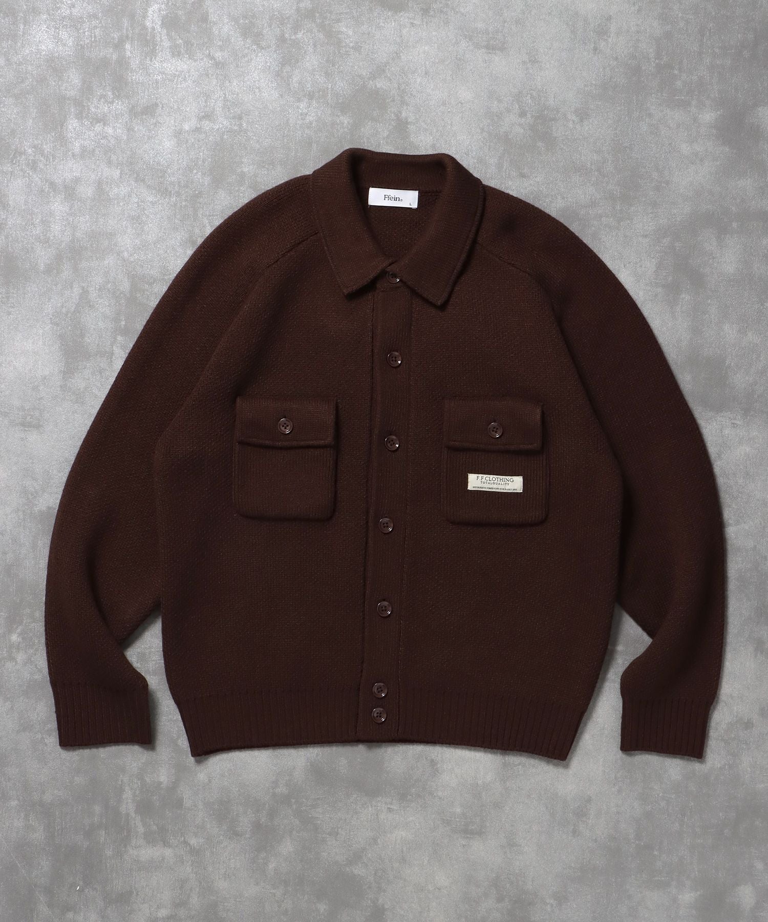 ・胸元に施された「F.F.CLOTHING」のビスネームがさりげないアクセント。