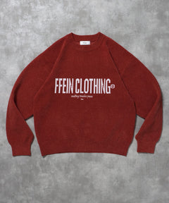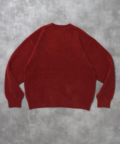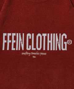 センターロゴウールライクニット / ウールライク ロゴ クルーネック ニット 刺繍 ワイン