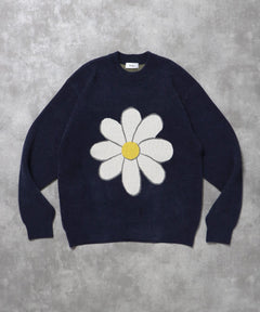 大きな花柄デザインが目を引く、遊び心あふれるモールニット。