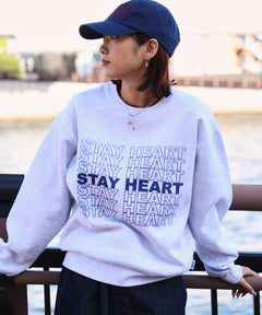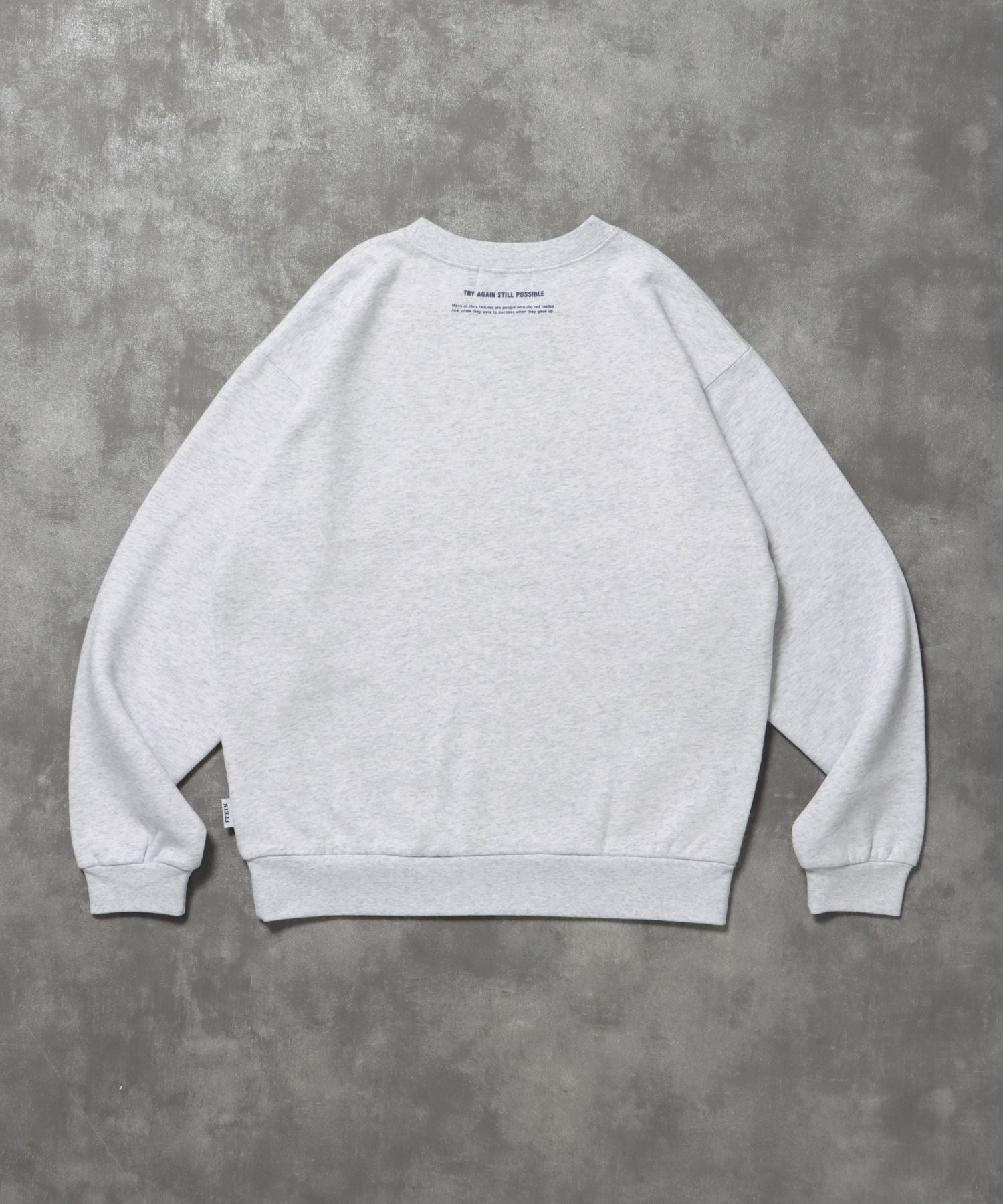 - ヘビーウエイトぼかしメッセージロゴスウェット / 裏起毛 スウェット クルーネック プリント アッシュグレー