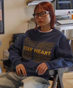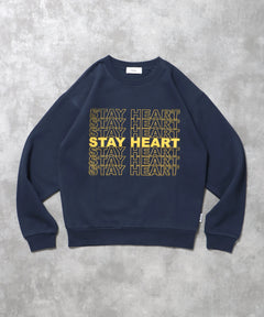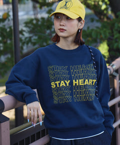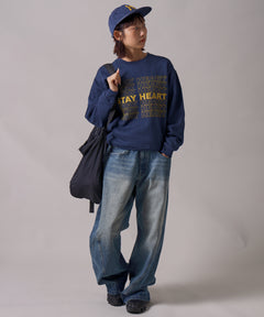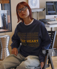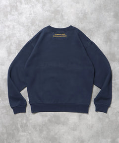 - ヘビーウエイトぼかしメッセージロゴスウェット / 裏起毛 スウェット クルーネック プリント ネイビー
