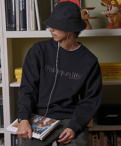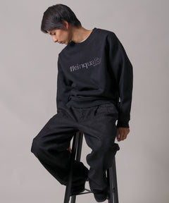 ヘビーウエイトセンターデカロゴ刺繍スウェット / スウェット トレーナー 刺繍 裏起毛 クルーネック ワンポイント ブラック