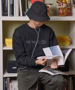 存在感抜群のセンターデカロゴ刺繍が目を引く、トレンド感あふれるスウェット。
