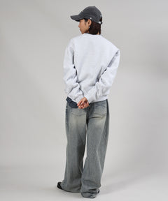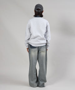ヘビーウエイトセンターデカロゴ刺繍スウェット / スウェット トレーナー 刺繍 裏起毛 クルーネック ワンポイント アッシュグレー