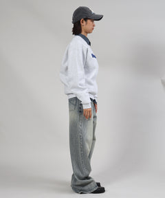 存在感抜群のセンターデカロゴ刺繍が目を引く、トレンド感あふれるスウェット。