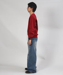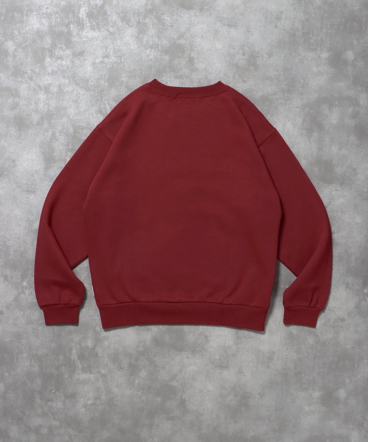 ヘビーウエイトセンターデカロゴ刺繍スウェット / スウェット トレーナー 刺繍 裏起毛 クルーネック ワンポイント ワイン