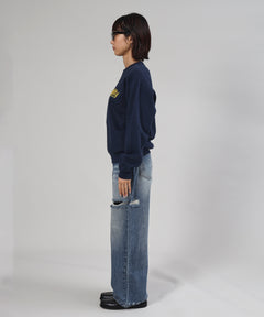 存在感抜群のセンターデカロゴ刺繍が目を引く、トレンド感あふれるスウェット。
