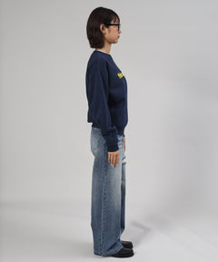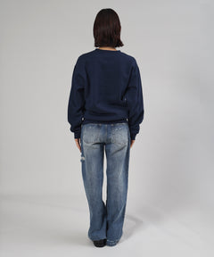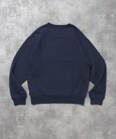 ヘビーウエイトセンターデカロゴ刺繍スウェット / スウェット トレーナー 刺繍 裏起毛 クルーネック ワンポイント ネイビー