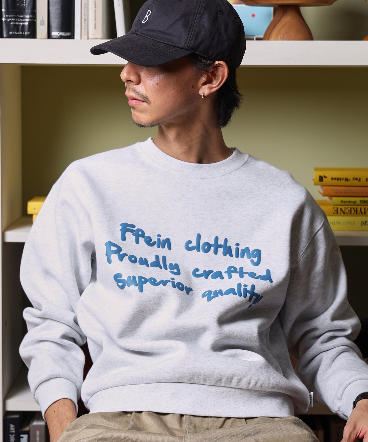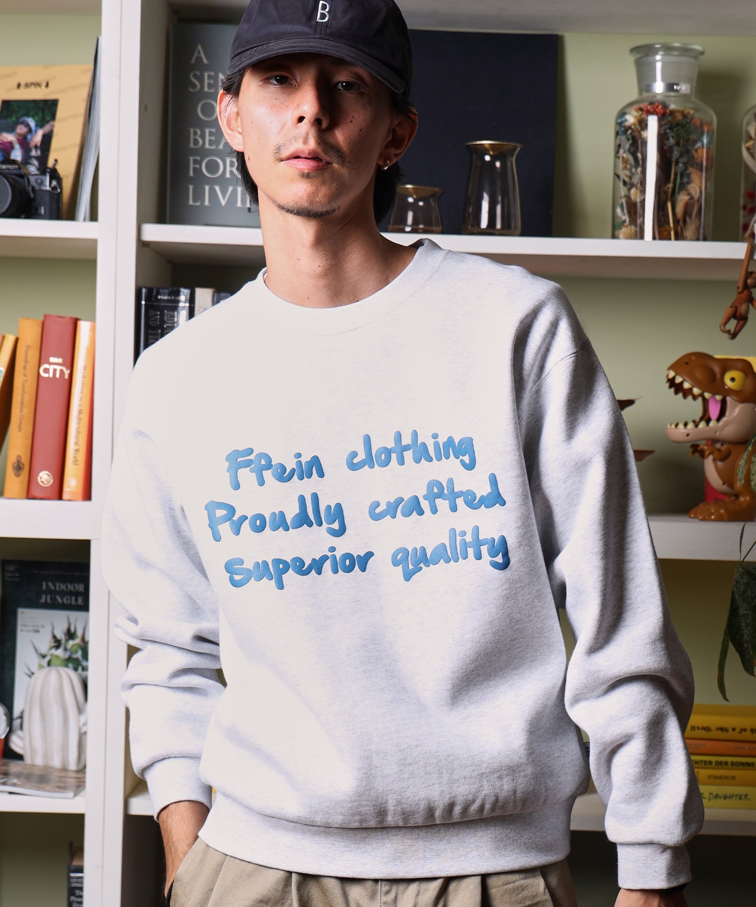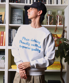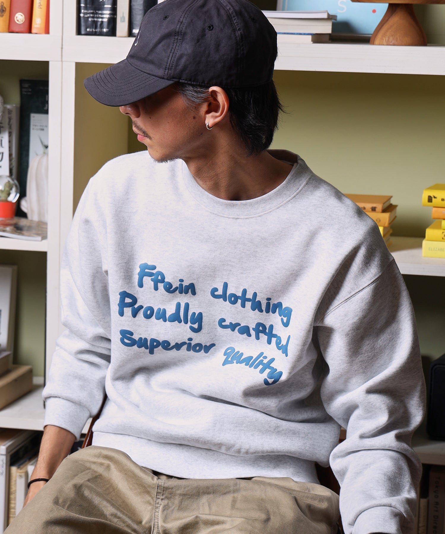 手書き風ロゴが特徴的な、温かみのあるデザインスウェット。