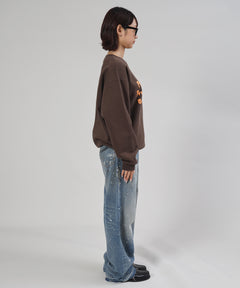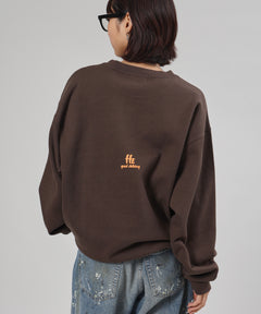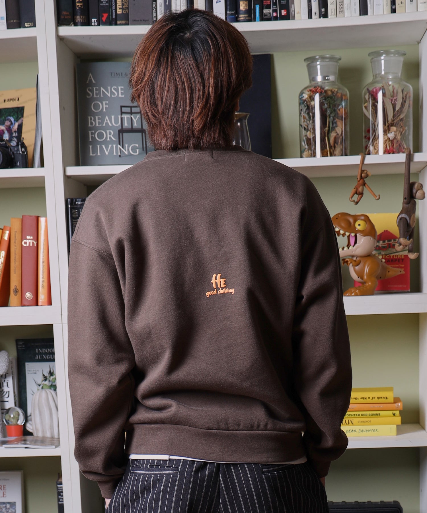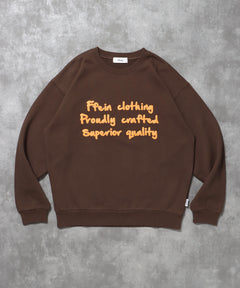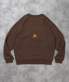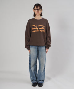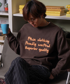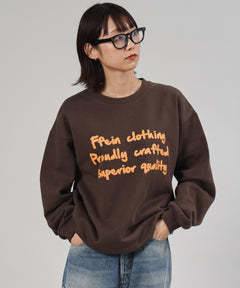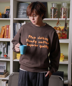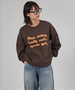 - ヘビーウエイト手書き風ロゴスウェット / 裏起毛 スウェット クルーネック ワンポイント プリント ブラウン
