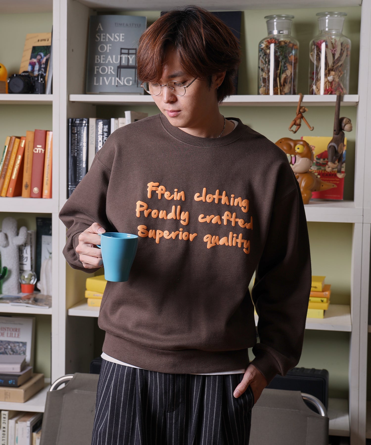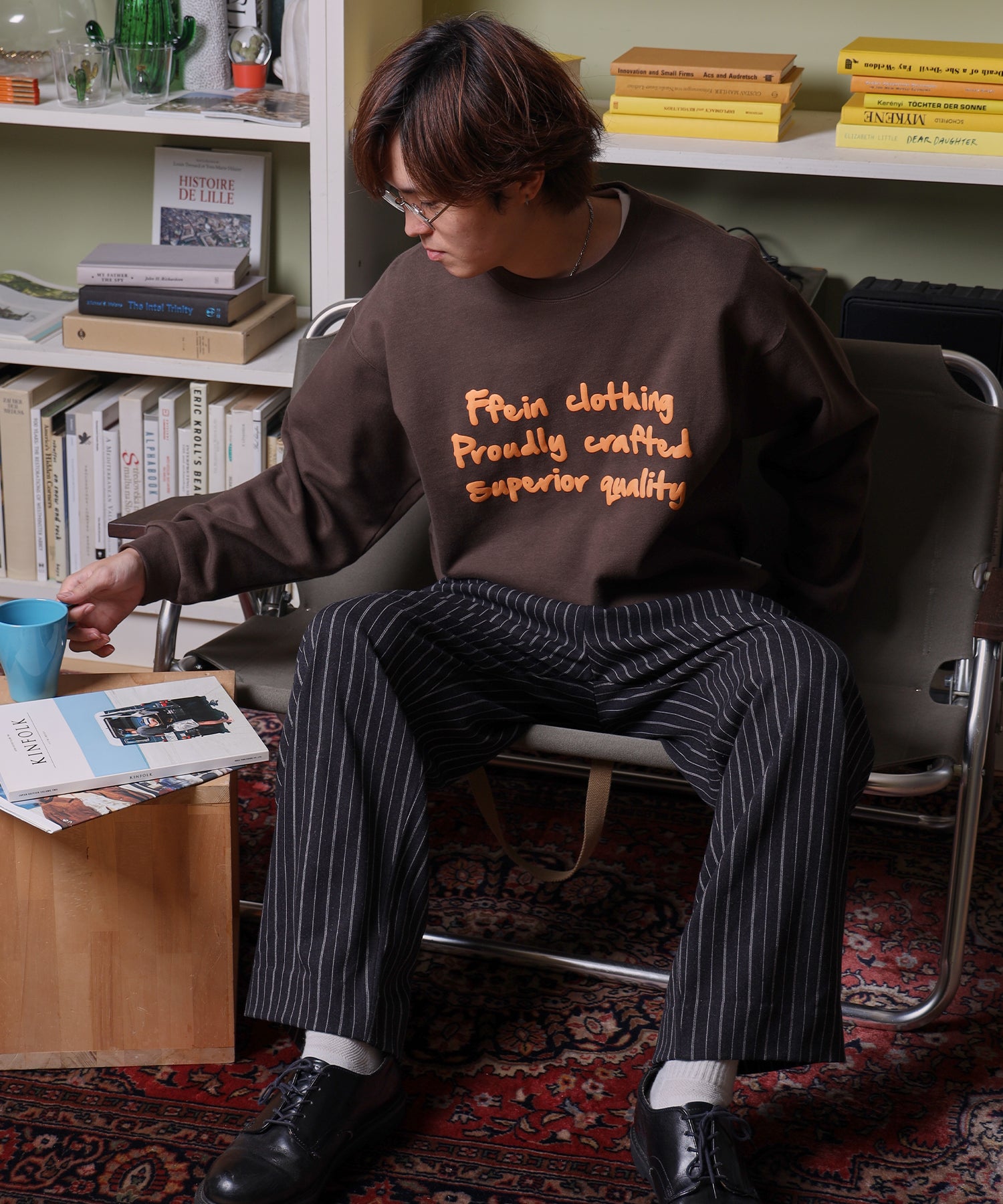 手書き風ロゴが特徴的な、温かみのあるデザインスウェット。