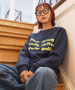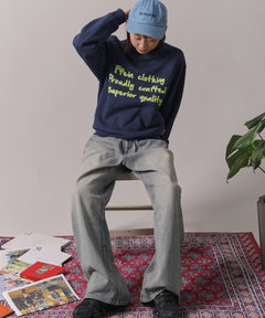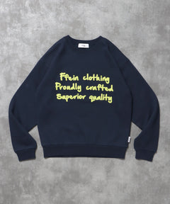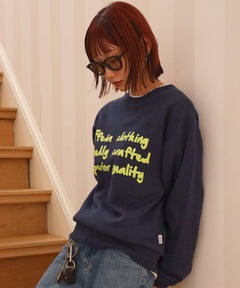 手書き風ロゴが特徴的な、温かみのあるデザインスウェット。