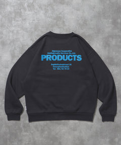 ヘビーウエイトウェーブロゴスウェット / 裏起毛 スウェット クルーネック ワンポイント プリント チャコール