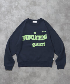 ヘビーウエイトウェーブロゴスウェット / 裏起毛 スウェット クルーネック ワンポイント プリント ネイビー