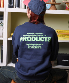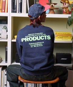 - ヘビーウエイトウェーブロゴスウェット / 裏起毛 スウェット クルーネック ワンポイント プリント ネイビー