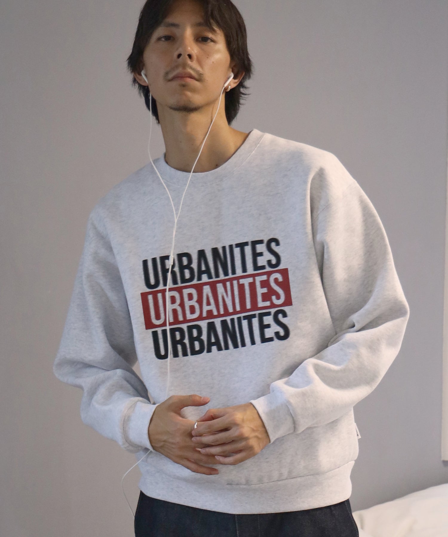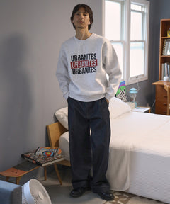 網点デザインのセンターロゴが特徴的な、トレンド感あふれるスウェット。