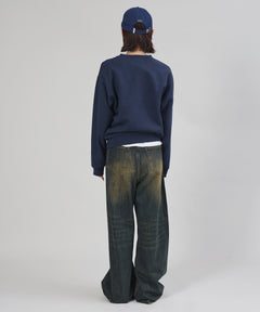 ヘビーウエイトメッセージスウェット / 裏起毛 スウェット クルーネック ワンポイント プリント ネイビー