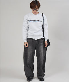クレヨン風ロゴが特徴的な、遊び心あふれるスウェット。