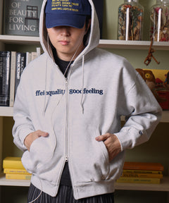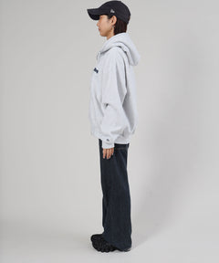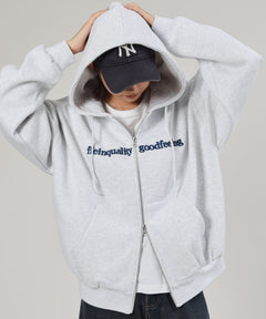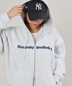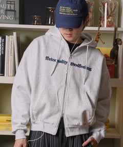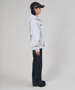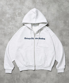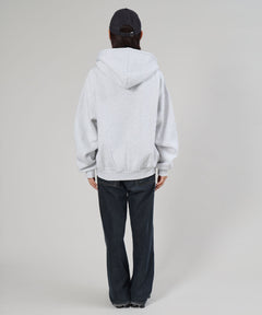 ヘビーウエイトセンターロゴ刺繍ZIPパーカー / パーカー 裏起毛 ジップ 刺繍 ロゴ フーディ バブルジップ アッシュグレー