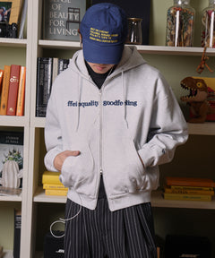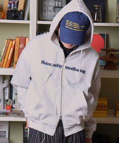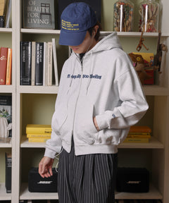 - ヘビーウエイトセンターロゴ刺繍ZIPパーカー / パーカー 裏起毛 ジップ 刺繍 ロゴ フーディ バブルジップ アッシュグレー