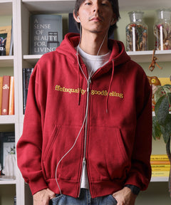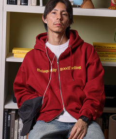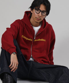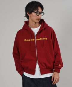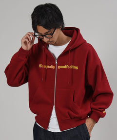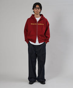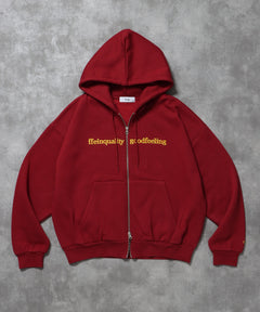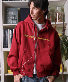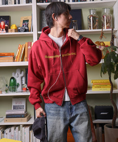 - ヘビーウエイトセンターロゴ刺繍ZIPパーカー / パーカー 裏起毛 ジップ 刺繍 ロゴ フーディ バブルジップ ワイン