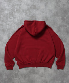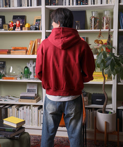 ヘビーウエイトセンターロゴ刺繍ZIPパーカー / パーカー 裏起毛 ジップ 刺繍 ロゴ フーディ バブルジップ ワイン