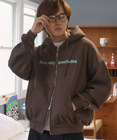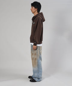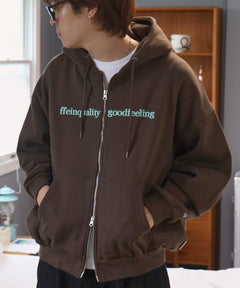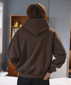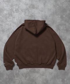 ヘビーウエイトセンターロゴ刺繍ZIPパーカー / パーカー 裏起毛 ジップ 刺繍 ロゴ フーディ バブルジップ ブラウン