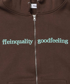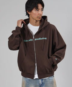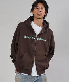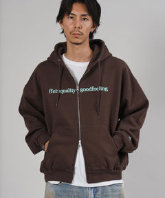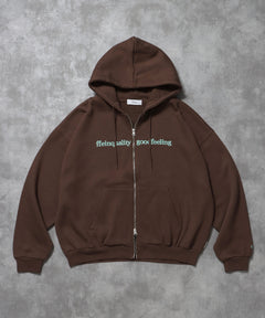 - ヘビーウエイトセンターロゴ刺繍ZIPパーカー / パーカー 裏起毛 ジップ 刺繍 ロゴ フーディ バブルジップ ブラウン