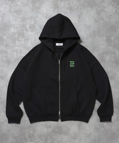 - ヘビーウエイトワンポイントロゴジップパーカー / パーカー 裏起毛 ジップ 刺繍 ロゴ フーディ ダブルジップ ブラック