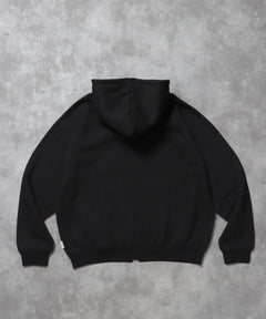 ヘビーウエイトワンポイントロゴジップパーカー / パーカー 裏起毛 ジップ 刺繍 ロゴ フーディ ダブルジップ ブラック