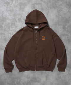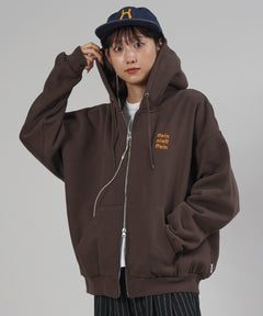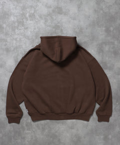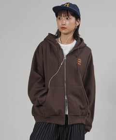 ヘビーウエイトワンポイントロゴジップパーカー / パーカー 裏起毛 ジップ 刺繍 ロゴ フーディ ダブルジップ ブラウン