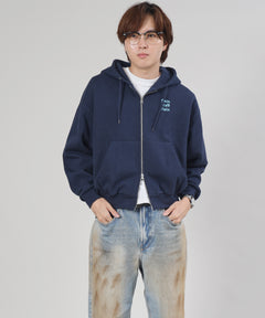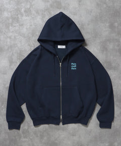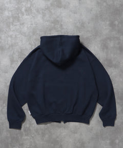 ヘビーウエイトワンポイントロゴジップパーカー / パーカー 裏起毛 ジップ 刺繍 ロゴ フーディ ダブルジップ ネイビー