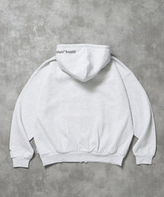 ヘビーウエイトフード刺繍ロゴジップパーカー / パーカー 裏起毛 ジップ 刺繍 ロゴ フーディ ダブルジップ アッシュグレー