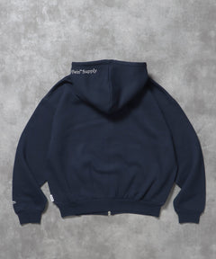 ヘビーウエイトフード刺繍ロゴジップパーカー / パーカー 裏起毛 ジップ 刺繍 ロゴ フーディ ダブルジップ ネイビー