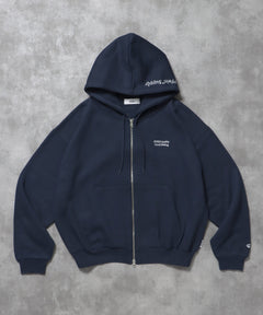 - ヘビーウエイトフード刺繍ロゴジップパーカー / パーカー 裏起毛 ジップ 刺繍 ロゴ フーディ ダブルジップ ネイビー