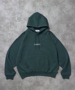 ヘビーウエイトセンターミニロゴジップパーカー / パーカー 裏起毛 ジップ 刺繍 ロゴ フーディ ダブルジップ グリーン