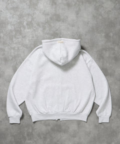 - ヘビーウエイト2段ロゴZIPパーカー / パーカー 裏起毛 ジップ 刺繍 ロゴ フーディ ダブルジップ アッシュグレー