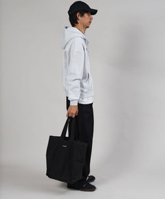 またぎ2段ロゴデザインが目を引く、シンプルで使いやすいジップパーカー。