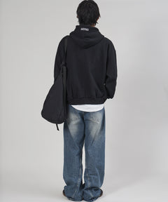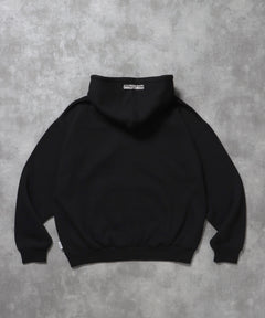 ヘビーウエイトぼかしロゴジップパーカー / パーカー 裏起毛 ジップ 刺繍 ロゴ フーディ ダブルジップ ブラック