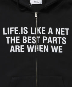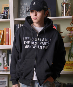 - ヘビーウエイトぼかしロゴジップパーカー / パーカー 裏起毛 ジップ 刺繍 ロゴ フーディ ダブルジップ ブラック