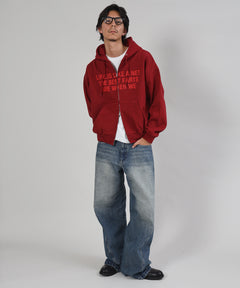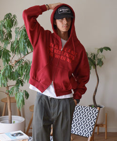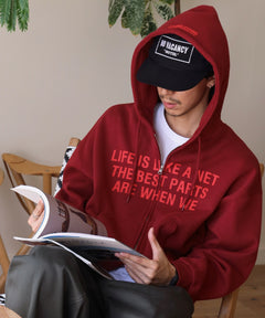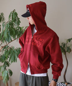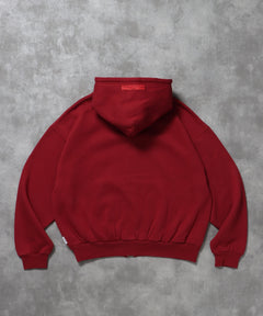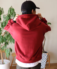 ヘビーウエイトぼかしロゴジップパーカー / パーカー 裏起毛 ジップ 刺繍 ロゴ フーディ ダブルジップ ワイン