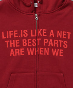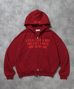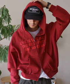 - ヘビーウエイトぼかしロゴジップパーカー / パーカー 裏起毛 ジップ 刺繍 ロゴ フーディ ダブルジップ ワイン