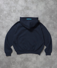 ヘビーウエイトぼかしロゴジップパーカー / パーカー 裏起毛 ジップ 刺繍 ロゴ フーディ ダブルジップ ネイビー