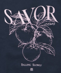 ・フロントに施されたフルーツモチーフのプリントが、遊び心とヴィンテージ感をプラス。