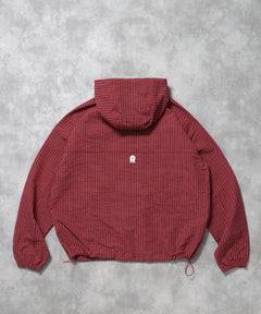 - 3段ロゴチェックマウンテンパーカー / ダブルジップ フーディ アウター ワンポイント レッド