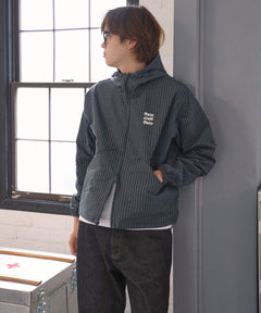 - 3段ロゴチェックマウンテンパーカー / ダブルジップ フーディ アウター ワンポイント ブルーグレー